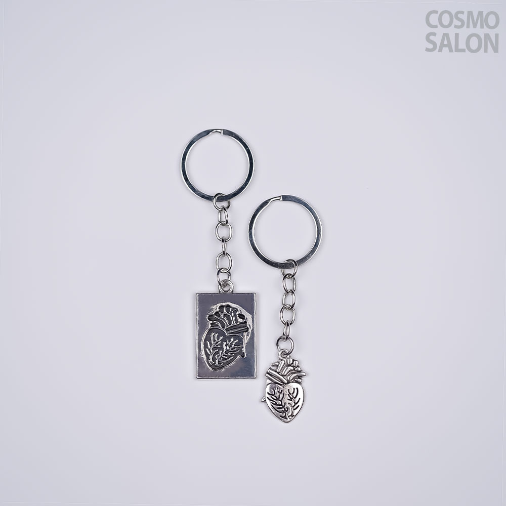 This unique set features two complementary keychains – one in a rectangular engraved plate and the other in a classic anatomical heart shape. Ideal for couples, best friends, or collectors of unique accessories. Both pieces are made from solid metal and exude a rustic, antique aesthetic. A great way to showcase your artistic flair and love for symbolic pieces.
